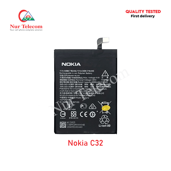 The latest Nokia C32 Battery Price in Bangladesh starts from — TK. Our website, nurtelecom.com.bd, offers the cheapest price in Bangladesh for the Nokia battery. Alternatively, you can come to our store to get this official and original brand product and receive customer support from our expert technicians at Nur Telecom. Our shop address is Shop No. 93, Basement-2, Bashundhara City Shopping Complex, Panthapath, Dhaka – 1215.