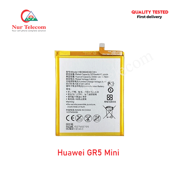 The latest Huawei GR5 Mini Battery Price in Bangladesh starts from — TK. Our website, nurtelecom.com.bd, offers the cheapest price in Bangladesh for the Huawei GR5 Mini Battery. Alternatively, you can come to our store to get this official and original brand product and receive customer support from our expert technicians at Nur Telecom. Our shop address is Shop No. 93, Basement-2, Bashundhara City Shopping Complex, Panthapath, Dhaka – 1215.