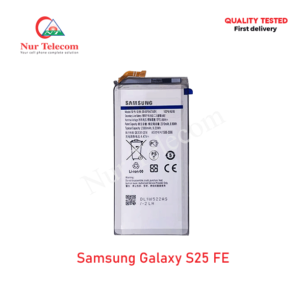 The latest Samsung S25 FE Battery Price in Bangladesh starts from 2199 TK. Our website, nurtelecom.com.bd, offers the cheapest price in Bangladesh for the Samsung S25 FE Battery. Alternatively, you can come to our store to get this official and original brand product and receive customer support from our expert technicians at Nur Telecom. Our shop address is Shop No. 93, Basement-2, Bashundhara City Shopping Complex, Panthapath, Dhaka – 1215.