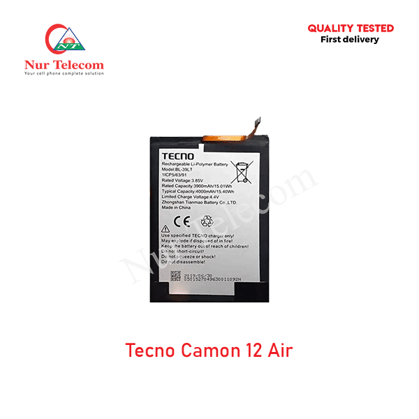 The latest Tecno Camon 12 Air Battery Price in Bangladesh starts from 1,199 TK. Our website, nurtelecom.com.bd, offers the cheapest price in Bangladesh for the Tecno battery. Alternatively, you can come to our store to get this official and original brand product and receive customer support from our expert technicians at Nur Telecom. Our shop address is Shop No. 93, Basement-2, Bashundhara City Shopping Complex, Panthapath, Dhaka – 1215.
