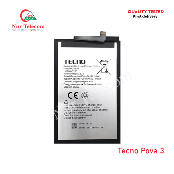 Ready to upgrade your smartphone’s battery? The Tecno Pova 3 Battery is available at the most affordable price in Bangladesh! Visit nurtelecom.com.bd and grab it now!