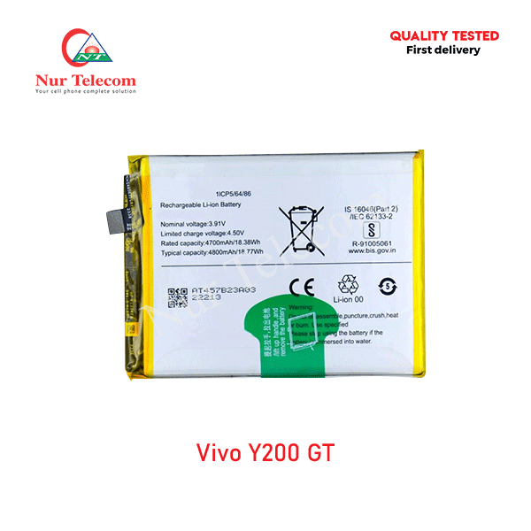 The latest Vivo Y200 GT Battery in Bangladesh starts from 1,499 TK. Our website, nurtelecom.com.bd, offers the cheapest price in Bangladesh for the Vivo Battery. Alternatively, you can come to our store to get this official and original brand product and receive customer support from our expert technicians at Nur Telecom. Our shop address is Shop No. 93, Basement-2, Bashundhara City Shopping Complex, Panthapath, Dhaka – 1215.