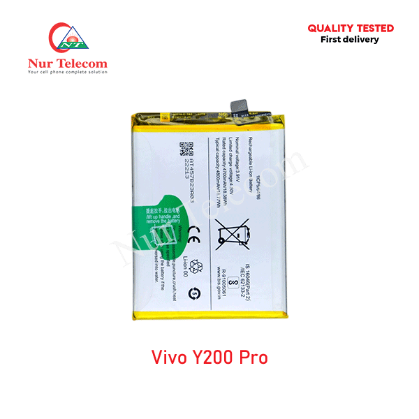 The latest Vivo Y200 Pro Battery in Bangladesh starts from 1,499 TK. Our website, nurtelecom.com.bd, offers the cheapest price in Bangladesh for the Vivo Battery. Alternatively, you can come to our store to get this official and original brand product and receive customer support from our expert technicians at Nur Telecom. Our shop address is Shop No. 93, Basement-2, Bashundhara City Shopping Complex, Panthapath, Dhaka – 1215.