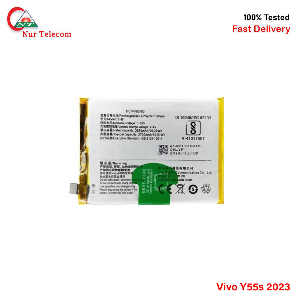 The latest Vivo Y55s 2023 Battery Price in Bangladesh starts from 749 TK. Our website, nurtelecom.com.bd, offers the cheapest price in Bangladesh for the Vivo Battery. Alternatively, you can come to our store to get this official and original brand product and receive customer support from our expert technicians at Nur Telecom. Our shop address is Shop No. 93, Basement-2, Bashundhara City Shopping Complex, Panthapath, Dhaka – 1215.