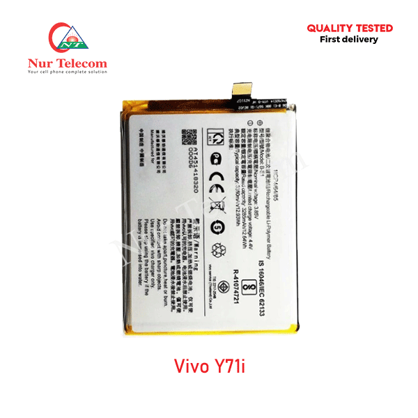 The latest Vivo Y71i Battery in Bangladesh starts from 899 TK. Our website, nurtelecom.com.bd, offers the cheapest price in Bangladesh for the Vivo Battery. As an alternative, you can come to our store to get this official and original brand product and receive customer support from our expert technicians at Nur Telecom. Our shop address is Shop No. 93, Basement-2, Bashundhara City Shopping Complex, Panthapath, Dhaka – 1215.