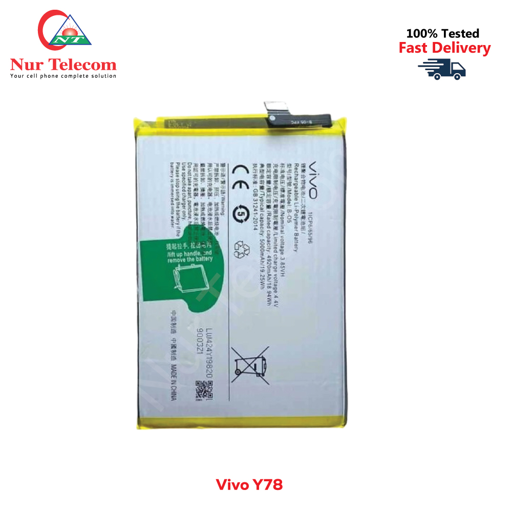 The latest Vivo Y78 Battery in Bangladesh starts from 999 TK. Our website, nurtelecom.com.bd, offers the cheapest price in Bangladesh for the Vivo Battery. Alternatively, you can come to our store to get this official and original brand product and receive customer support from our expert technicians at Nur Telecom. Our shop address is Shop No. 93, Basement-2, Bashundhara City Shopping Complex, Panthapath, Dhaka – 1215.