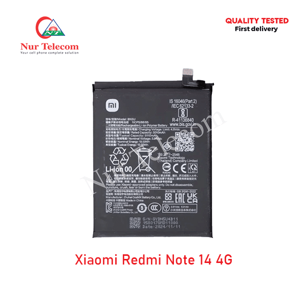 Our website, nurtelecom.com.bd, offers the cheapest price in Bangladesh for the Xiaomi Redmi Note 14 4G Battery. Alternatively, you can come to our store to get this official and original brand product and receive customer support from our expert technicians at Nur Telecom. Our shop address is Shop No. 93, Basement-2, Bashundhara City Shopping Complex, Panthapath, Dhaka – 1215.